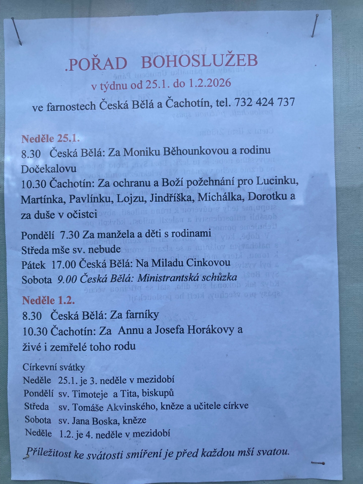 farnosti Česká Bělá a Čachotín